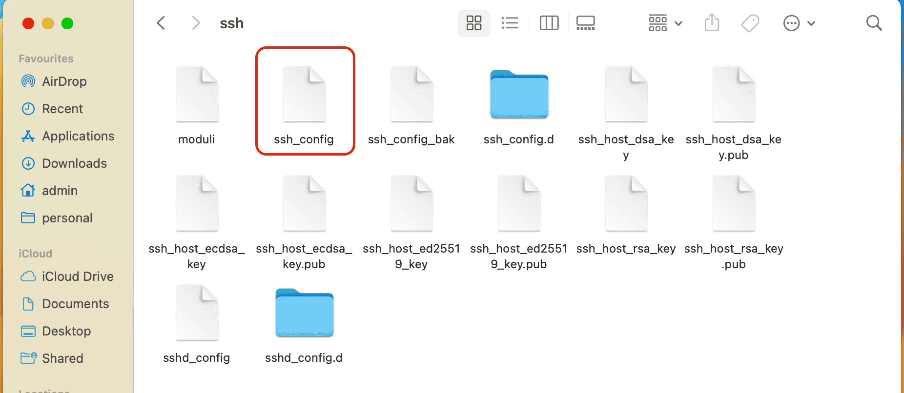 - Type the following location into the box and press Enter (Alternatively, you can navigate manually to the location via Macintosh HD > etc > ssh):